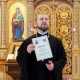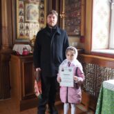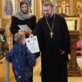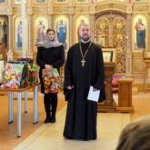 Благочинный Левобережного церковного округа священник Алексей Завгородний поздравил победителей, пожелал детям творческих успехов, вручил грамоты и подарки.