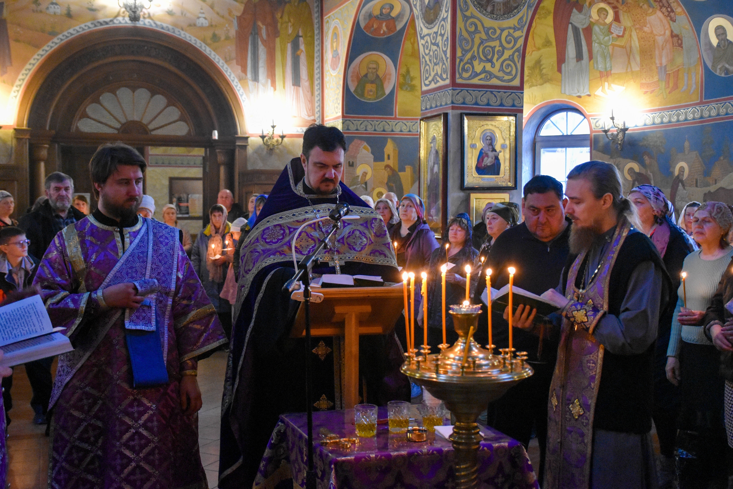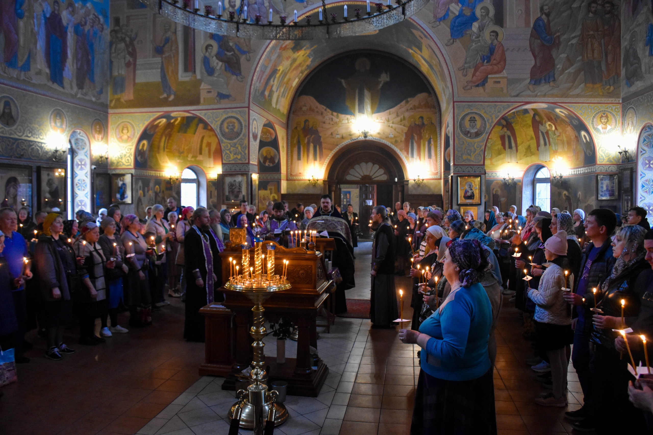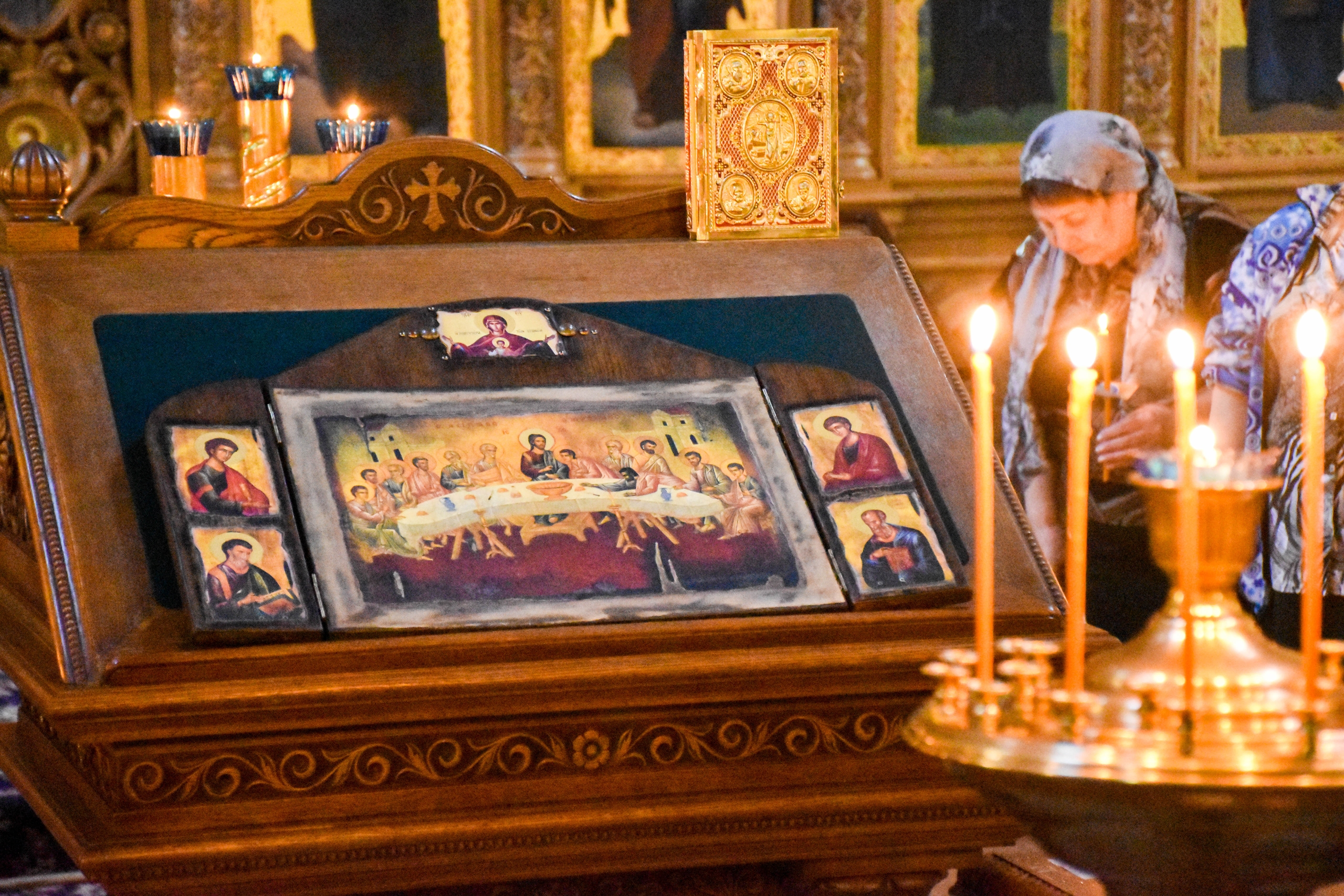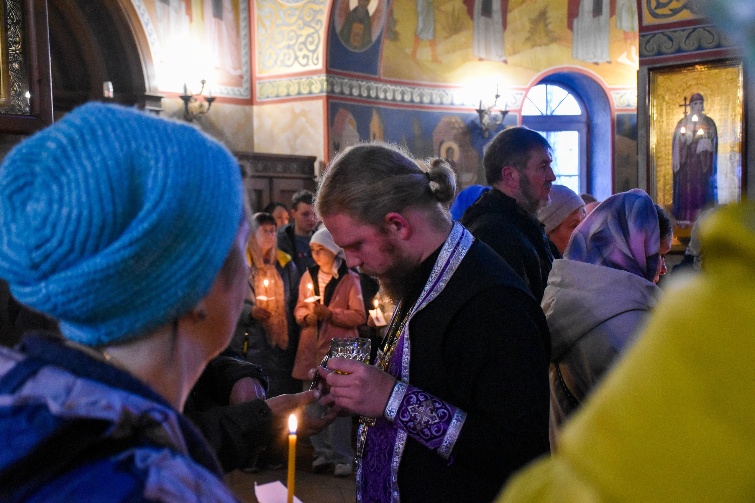 В храме во имя преподобного Сергия Радонежского было совершено вечерние богослужение с утреней Великого Четверга на котором читалось Евангелие