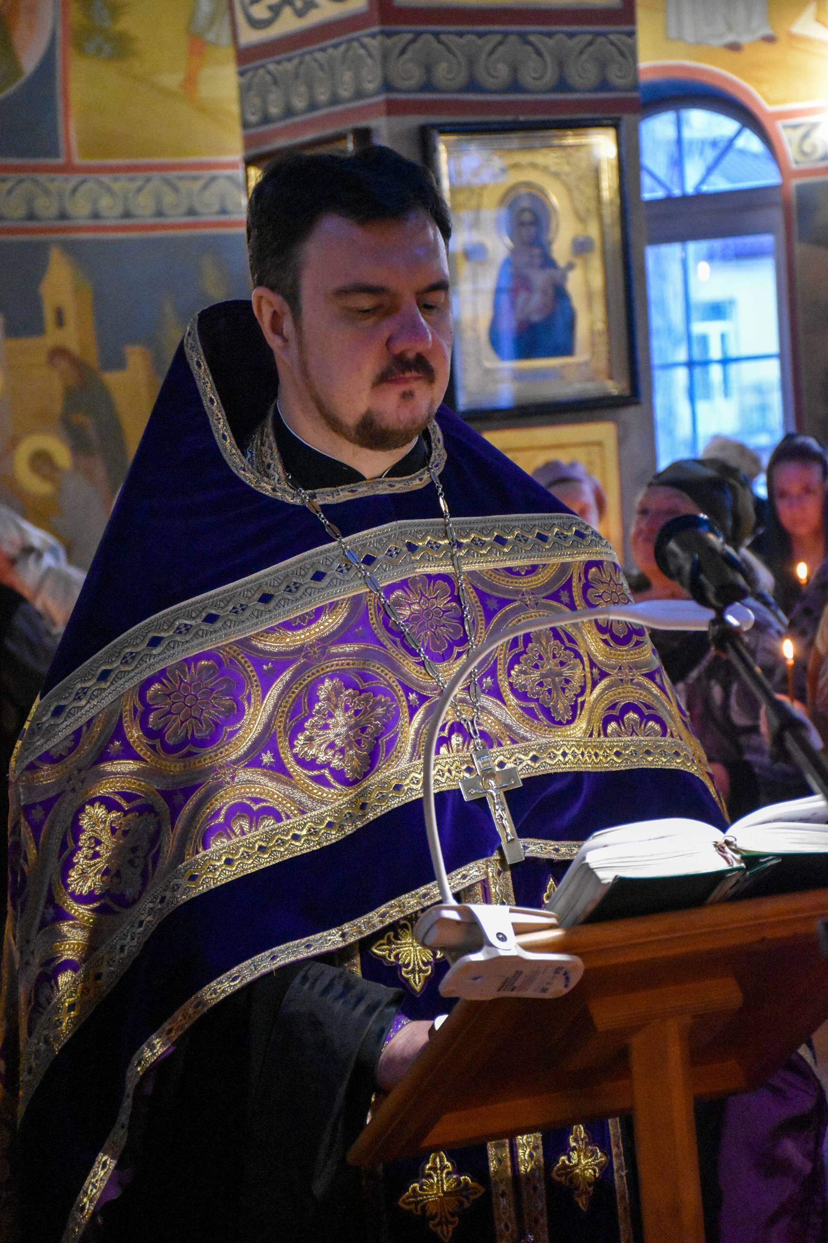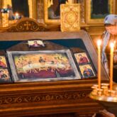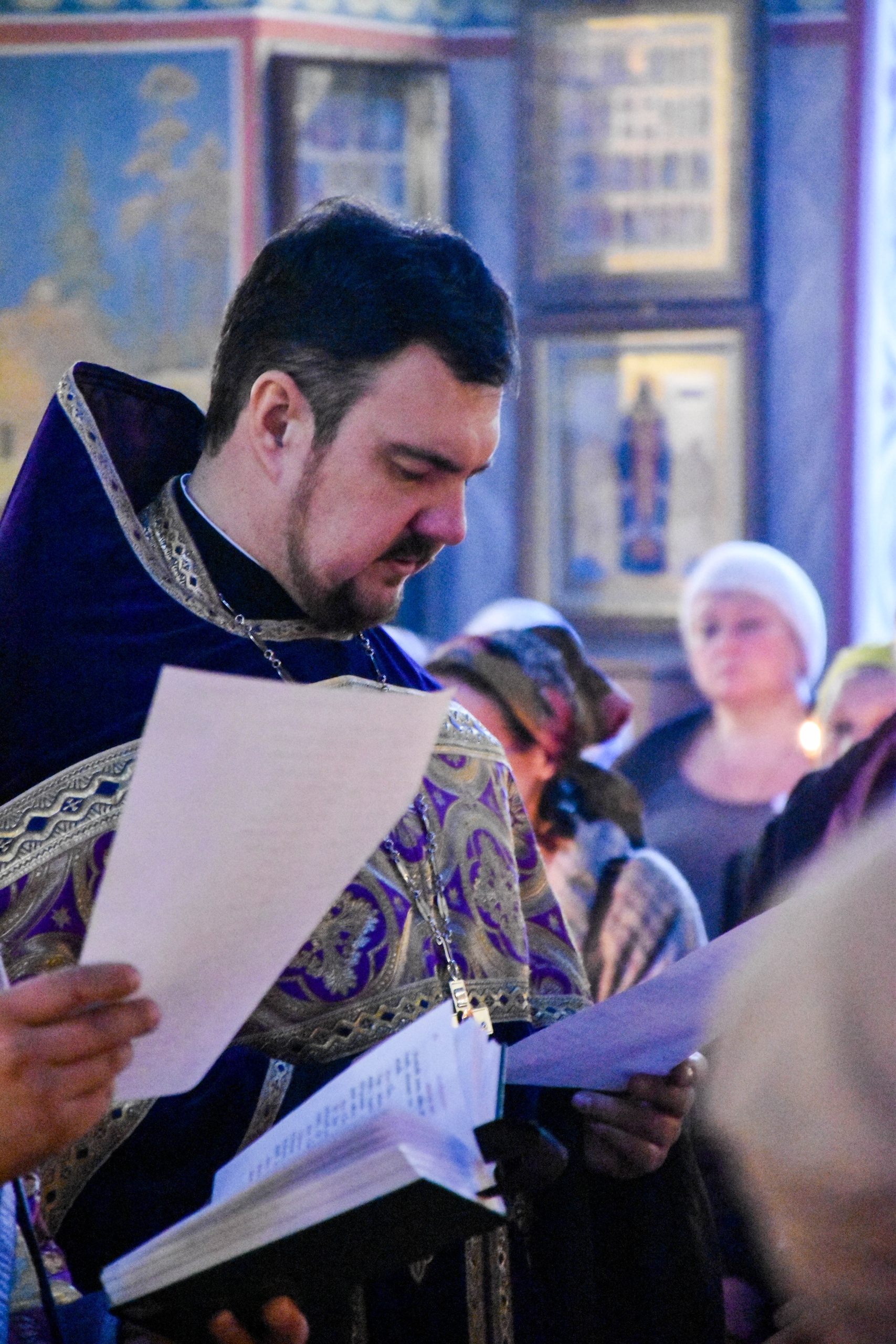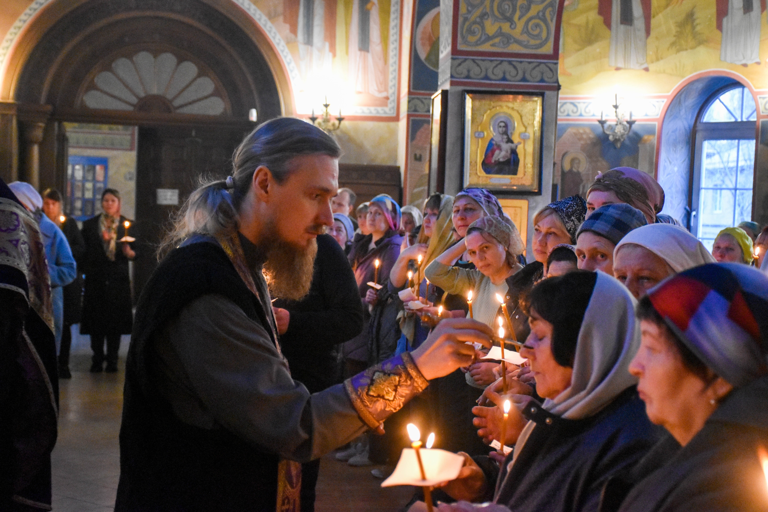 В храме во имя преподобного Сергия Радонежского было совершено вечерние богослужение с утреней Великого Четверга на котором читалось Евангелие