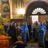 Богослужение возглавил настоятель храма священник Алексей Завогородний. Отцу Алексею сослужили клирики храма священник Сергий Левищев, священник Андрей Толстолуцкий, священник Виктор Басов, диакон Виктор Кораблин и диакон Александр Карнаух.