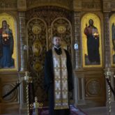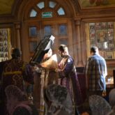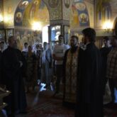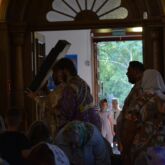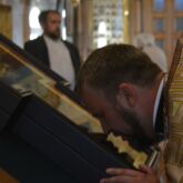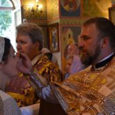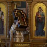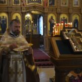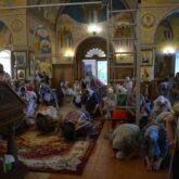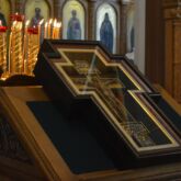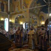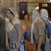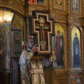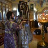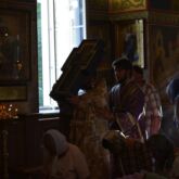 13 августа в храме во имя преподобного Сергия Радонежского совершалась Вечерня и Славословная Утреня, на которой из алтаря для поклонения верующим был изнёсен Животворящий Крест Господень.