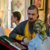 Богослужебные песнопения исполнил смешанный хор под управлением регента Алексея Завалишина.