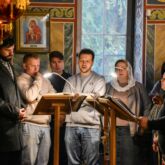 Богослужебные песнопения исполнили смешанный хор под управлением регента Алексея Завалишина.