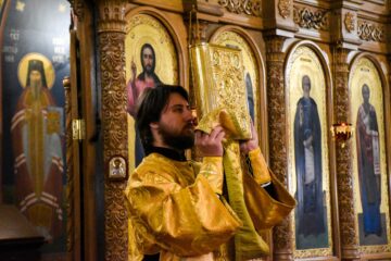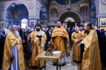 27 апреля 2024 года, в канун Недели 6-й Великого поста, ваий, праздника Входа Господня в Иерусалим, в храме во имя преподобного Сергия Радонежского было совершено Всенощное бдение с Литией.