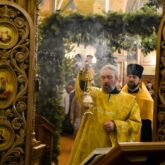 24 декабря в канун празднования святителя Спиридона, епископа Тримифунтского чудотворца, в храме во имя Преподобного Сергия Радонежского совершалось Всенощное бдение с литией.