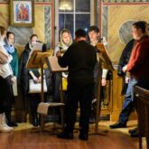 Богослужебные песнопения исполнил смешанный хор под управлением регента Алексея Завалишина.