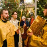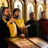 В нашем храме богослужение возглавил настоятель храма священник Алексей Завогородний. Отцу Алексею сослужили священник Виктор Басов, диакон Александр Карнаух и диакон Виктор Кораблин.