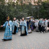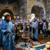 Вечером 27 августа в канун празднования Успения Пресвятой Владычицы нашей Богородицы и Приснодевы Марии, в храме во имя прп. Сергия Радонежского было совершено Всенощное бдение с чином Погребения Плащаницы Пресвятой Богородицы.