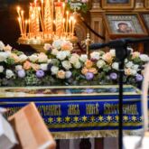 В канун празднования Успения Пресвятой Владычицы нашей Богородицы и Приснодевы Марии, в храме во имя прп. Сергия Радонежского было совершено Всенощное бдение с чином Погребения Плащаницы Пресвятой Богородицы
