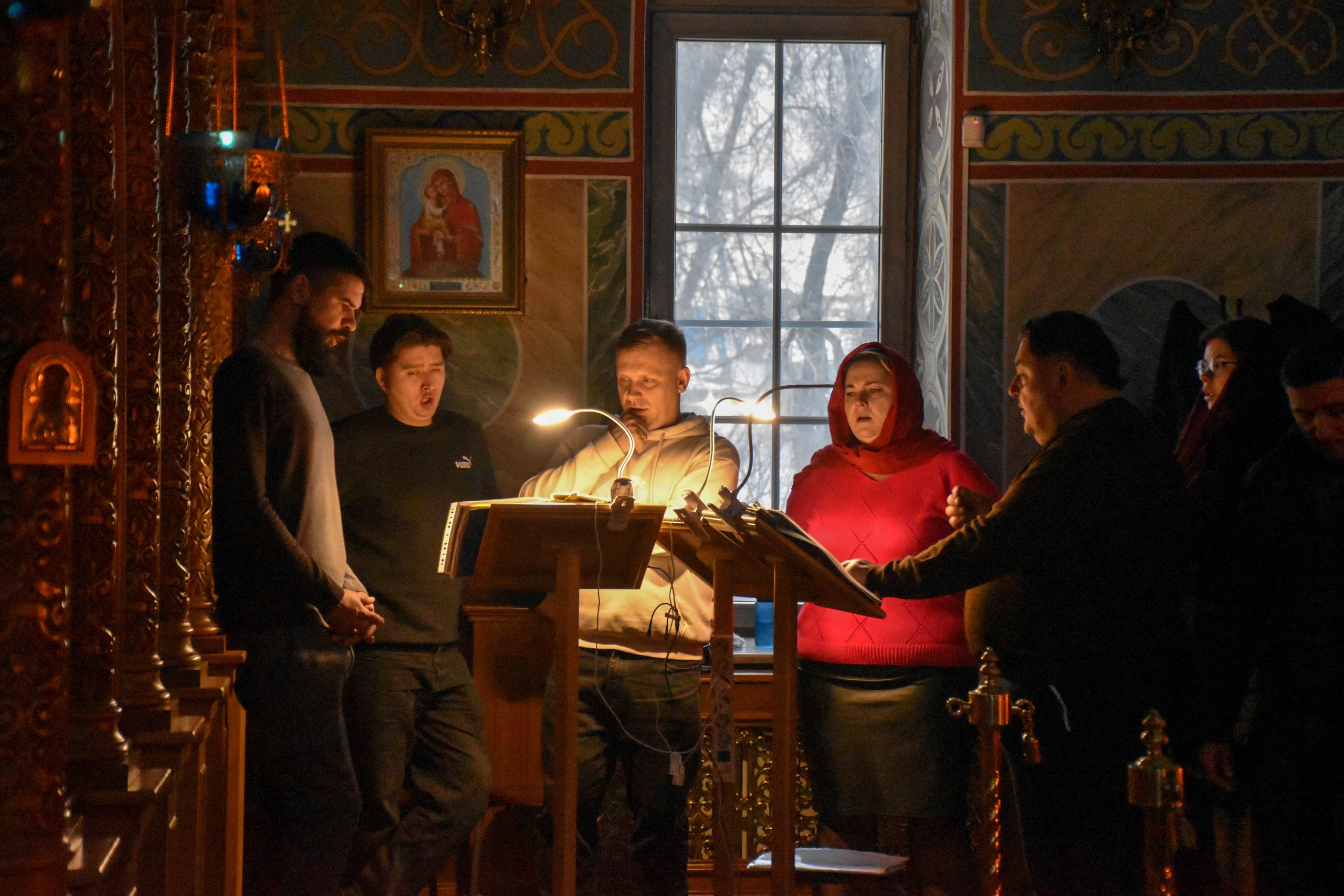 Богослужебные песнопения исполнили смешанный хор под управлением регента Алексея Завалишина.