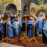 Богослужебные песнопения исполнил мужской хор под управлением регента Алексея Завалишина.
