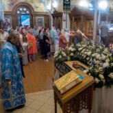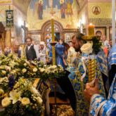 27 августа, в канун великого двунадесятого праздника Успения Пресвятой Богородицы, в храме во имя преподобного Сергия Радонежского совершалось Всенощное бдение с литией и Выносом Плащаницы Пресвятой Богородицы.