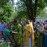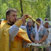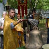 В воскресенье 23 июня в нашем храме освятили колокол, приобретенный на пожертвования прихожан. После Божественной Литургии торжественным Крестным ходом все прихожане во главе со священником, вышли на территорию храма, где был отслужен водосвятный молебен с чтением молитвы на освящение колокола. Благодаря неравнодушию наших прихожан и их пожертвованиям, за короткое время была собрана необходимая сумма и наша звонница пополнилась большим колоколом, который будет возвещать всем людям о начале богослужения, напоминать о Боге, о Церкви, о том, что Христос спас всех людей и ждет каждого человека, незримо являя Себя в главном Таинстве Церкви — Евхаристии.
