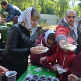 В последнее воскресенье сентября на нашем приходе чествовали пожилых прихожан. По окончании Божественной Литургии и Водосвятного молебна настоятель поздравил пожилых людей с праздником и пригласил на праздничный концерт, организованный воспитанниками воскресной школы и ансамблем народной песни «Гармоника», созданным на базе центра социальной защиты населения «Жемчужина», Левобережного района. А затем, после праздничного поздравления, всех собравшихся угостили кашей, приготовленной на полевой кухне.