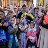 По окончании Литургии перед иконой на центре храма было совершено славление празднику.