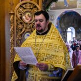 По отпусте литургии, отец Роман обратился к прихожанам со словами проповеди. Настоятель рассказал о воскресном евангльском зачале, которое читалось за литургией.