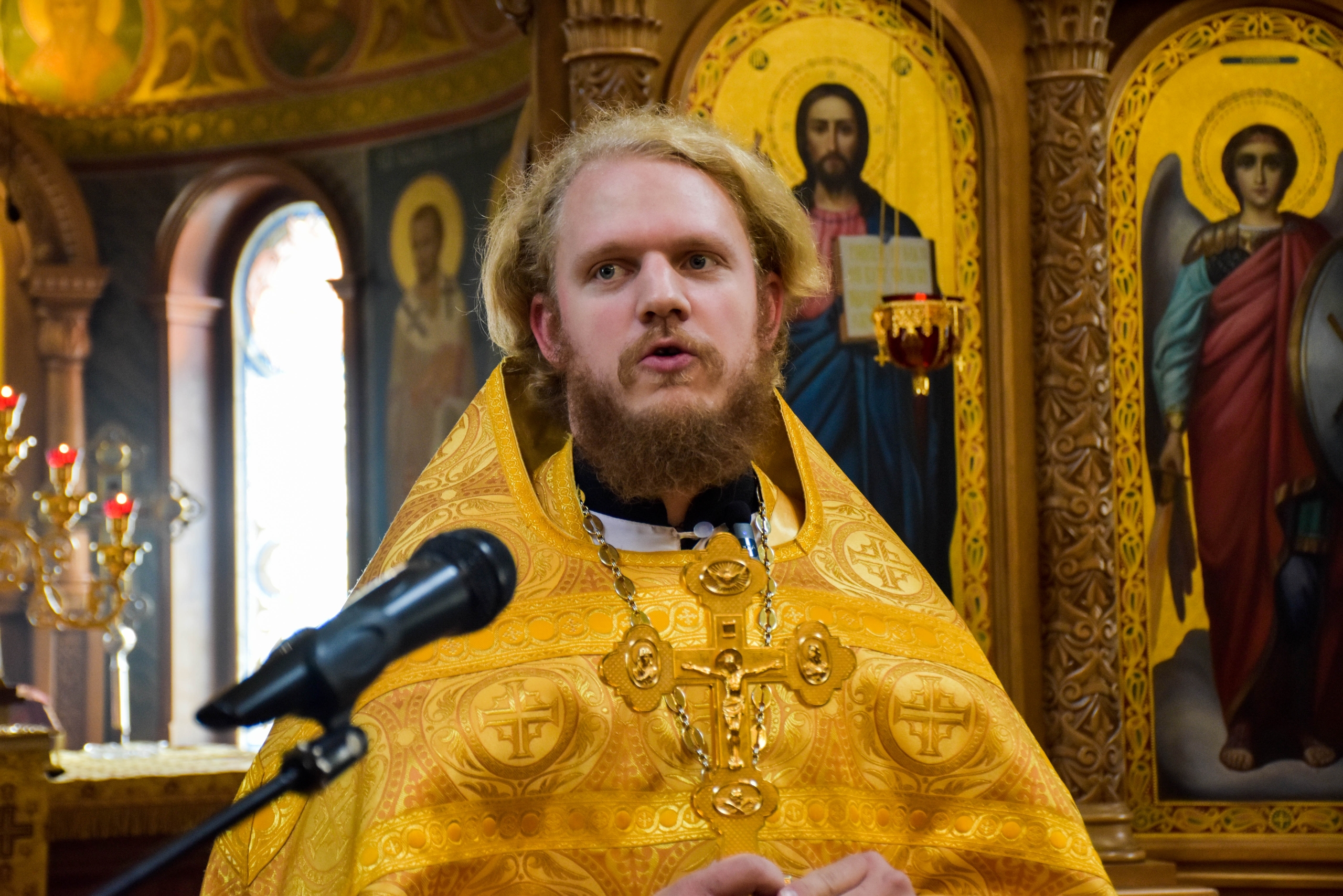 По отпусте литургии, отец Иоанн обратился к прихожанам со словами проповеди.