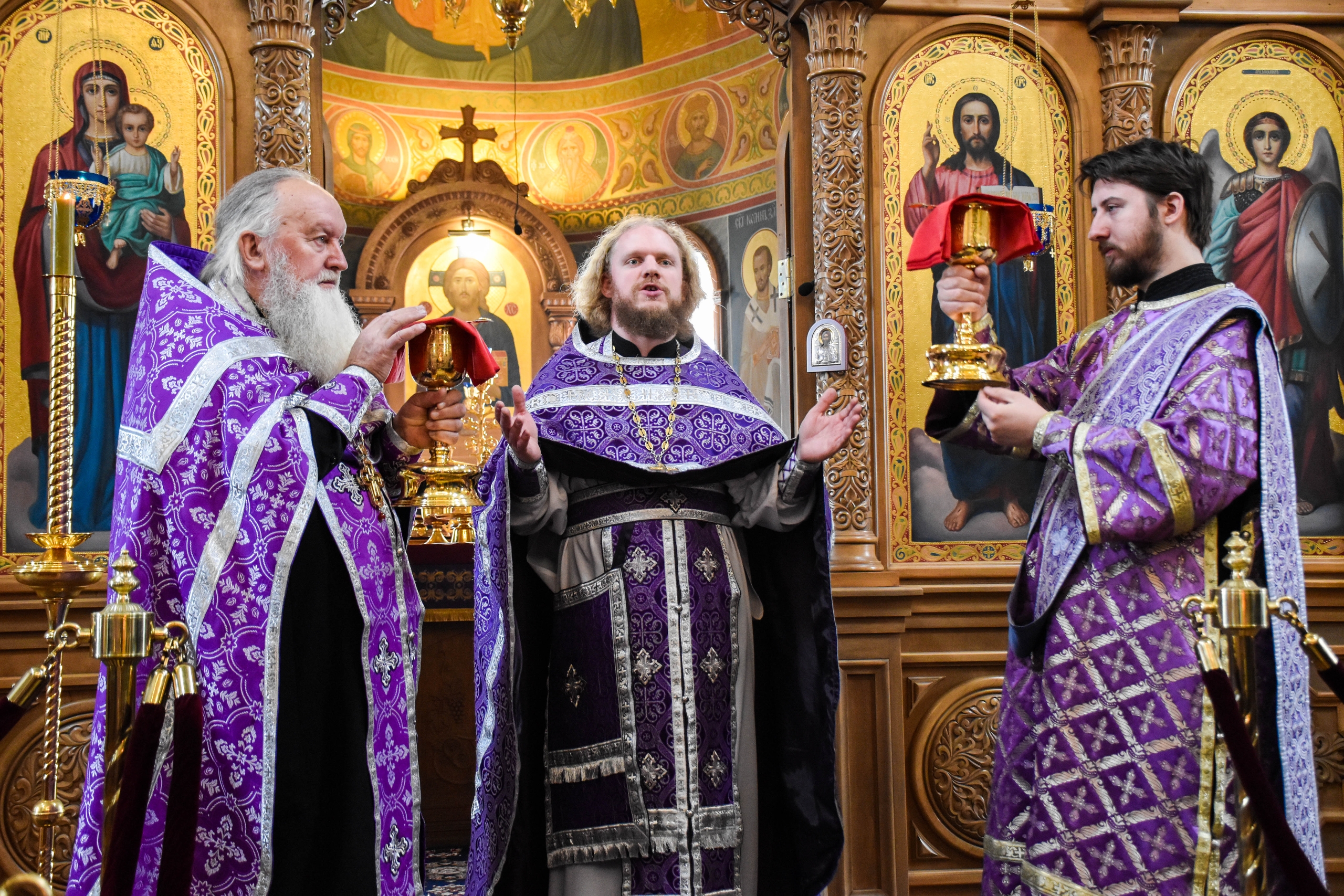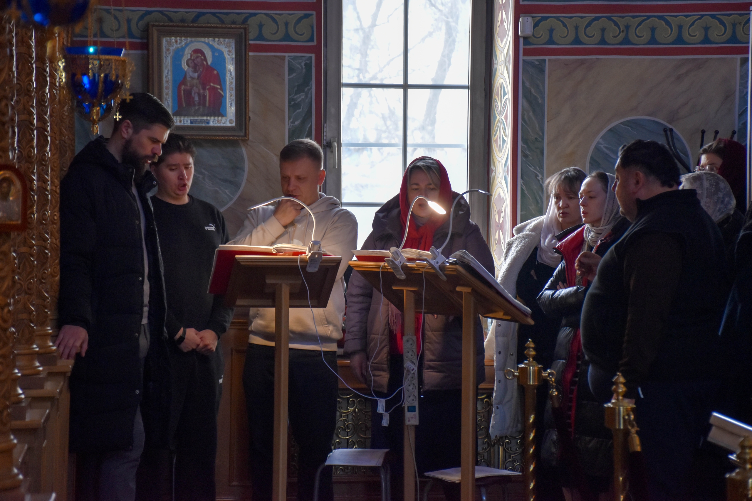 Богослужебные песнопения исполнил смешанный хор под управлением регента Алексея Завалишина.