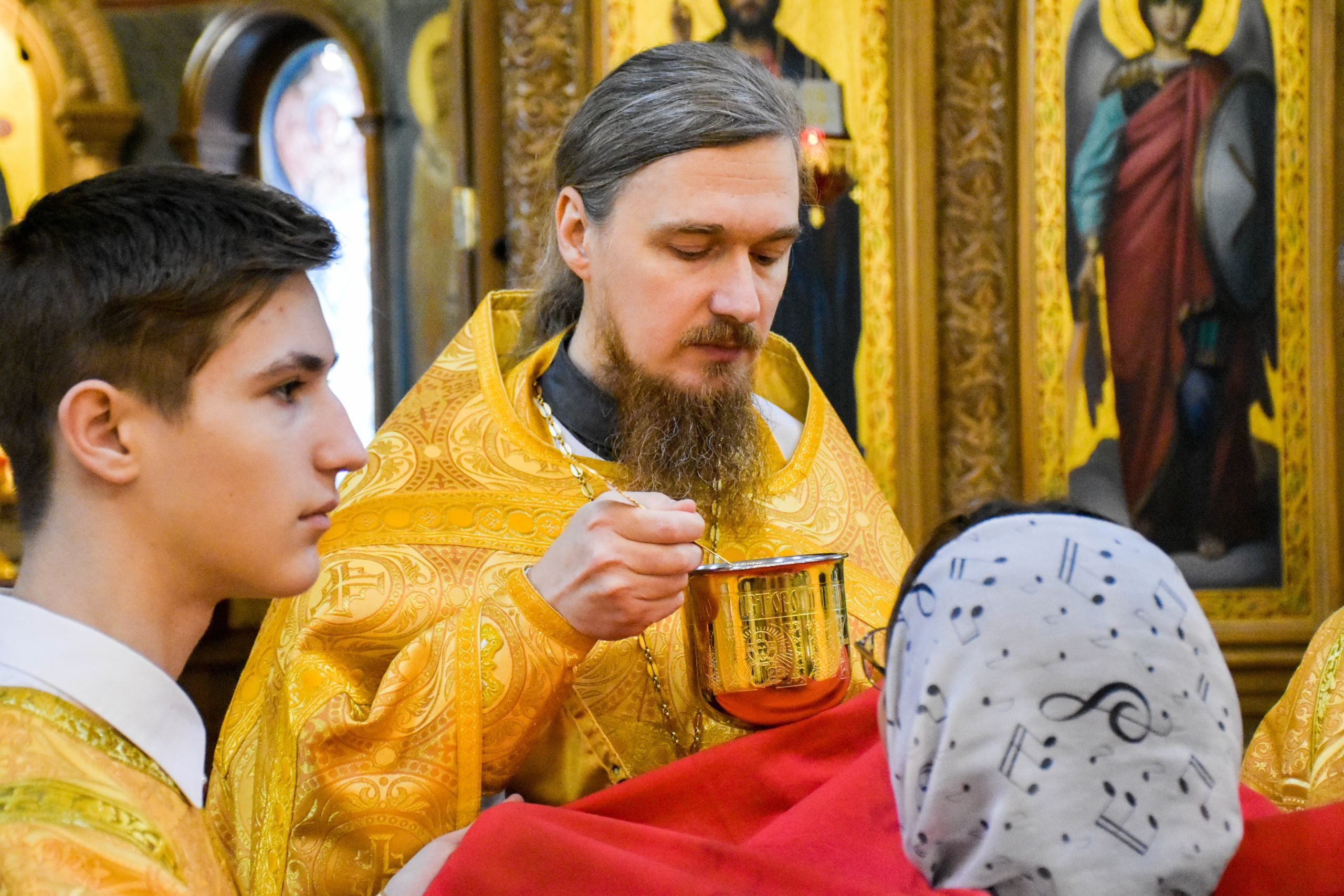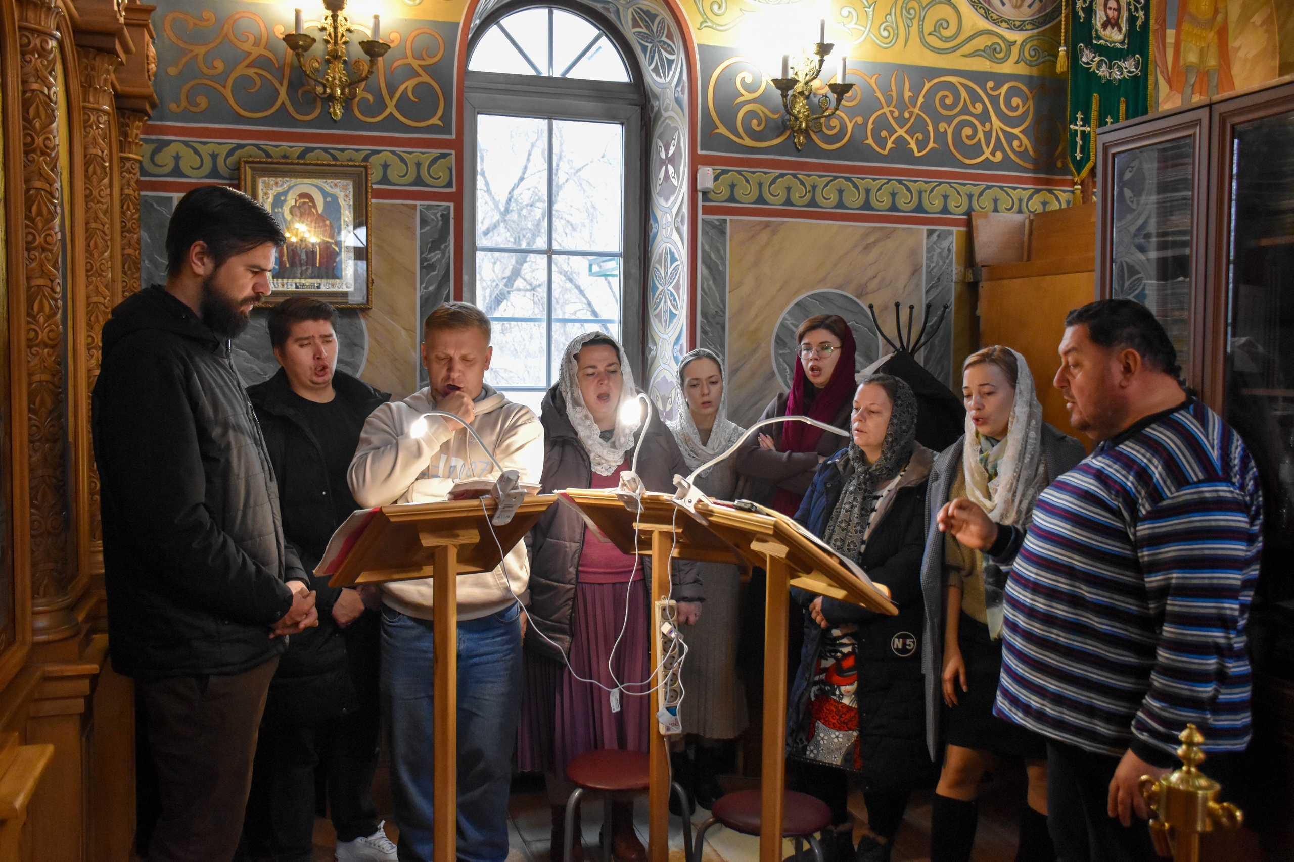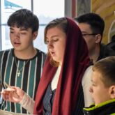 Богослужебные песнопения исполнили мужской хор под управлением регента Алексея Завалишина и молодежный хор под управлением регента Веры Басовой.