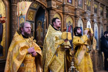 Богослужение возглавил настоятель храма протоиерей Роман Вылуск, Его Высокопреподобию сослужили клирики храма и прибывшие на праздник гости в священном сане.
