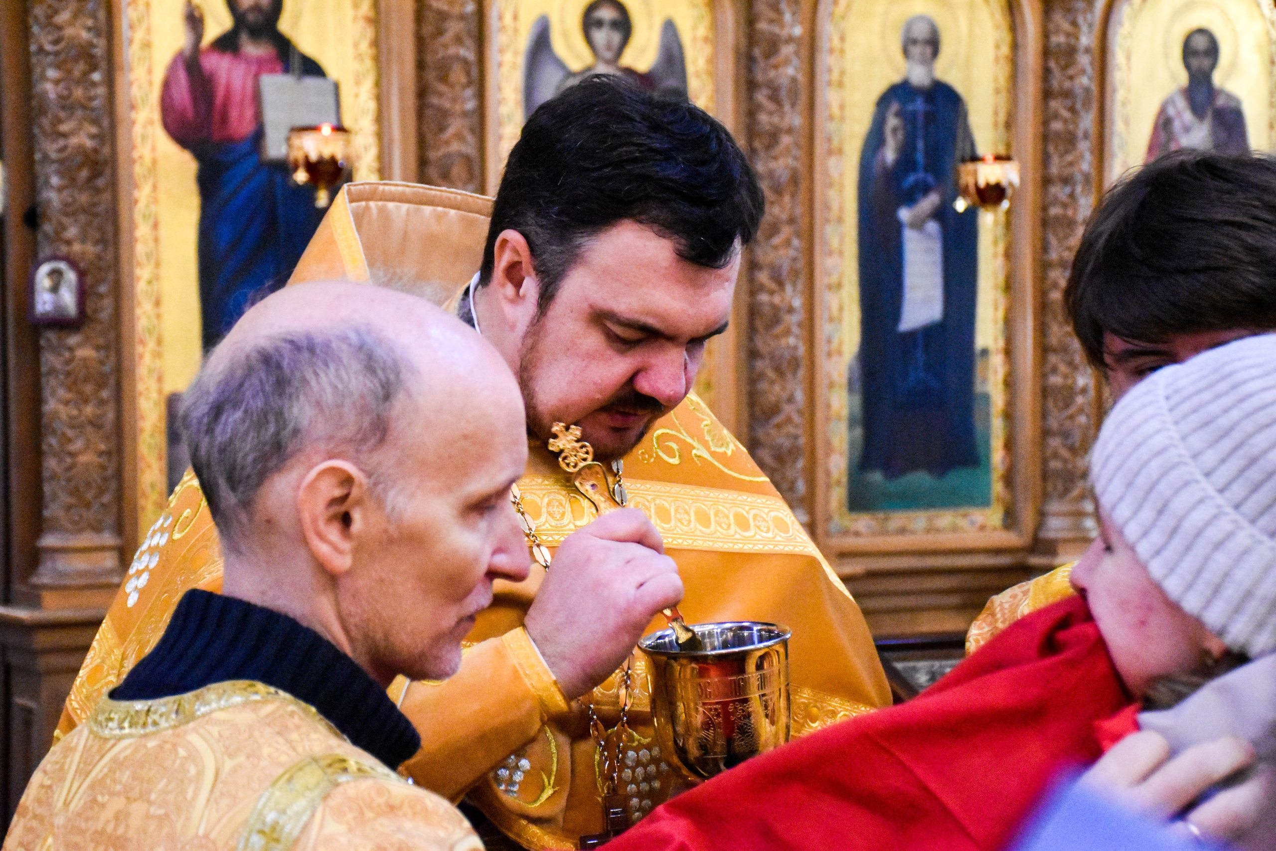 По запричастном стихе со словами проповеди к прихожанам обратился клирик храма иерей Виктор Басов.
