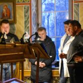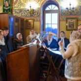 Богослужебные песнопения исполнили молодёжный хор под управлением регента матушки Веры Басовой и мужской хор под управлением регента Алексея Завалишина.