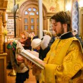 Богослужение возглавил настоятель храма священник Алексей Завгородний, которому сослужили священник Виктор Басов, диакон Виктор Кораблин и диакон Александр Карнаух.