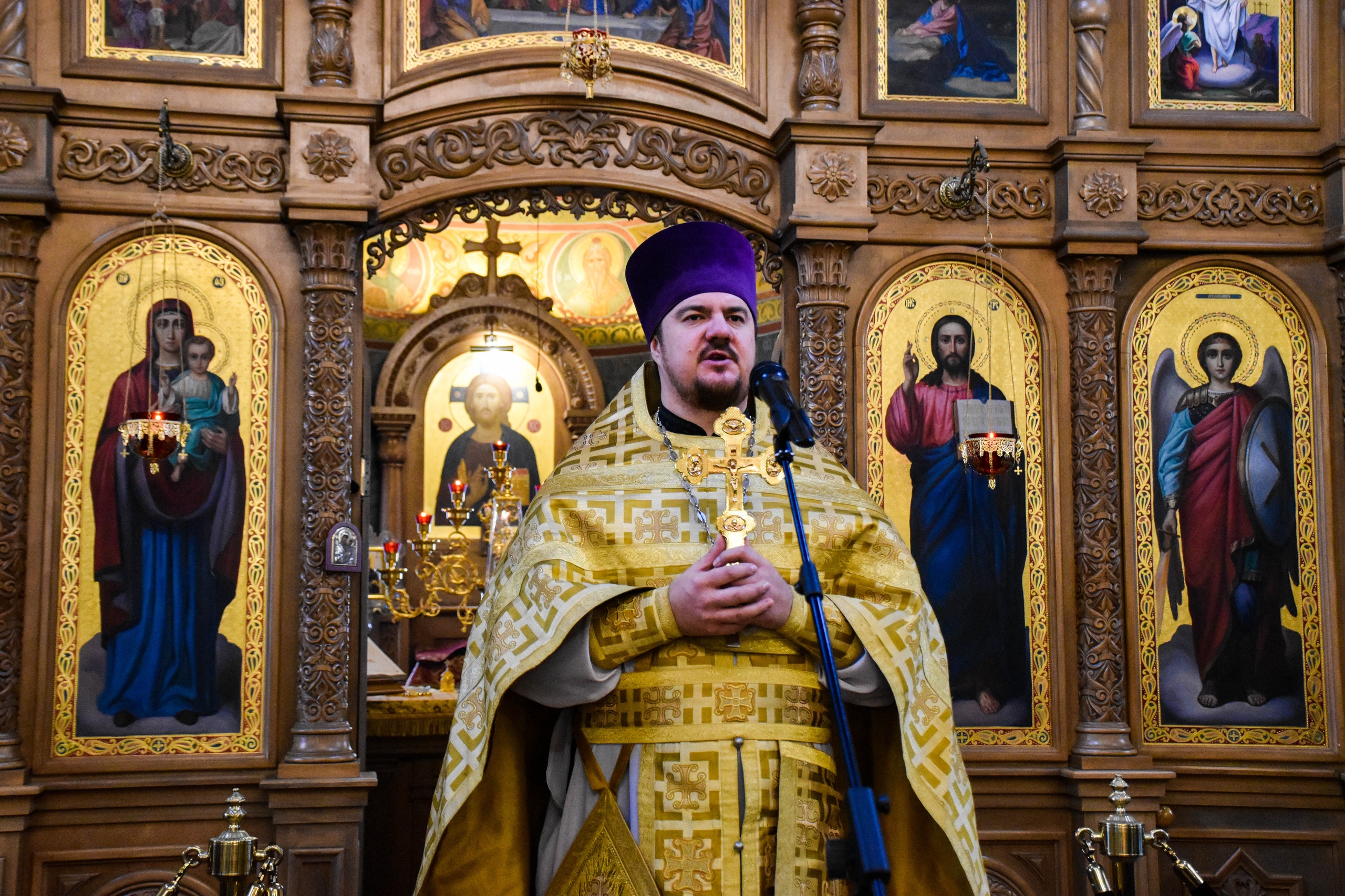 По окончании богослужения отец Роман обратился к прихожанам со словами проповеди.
