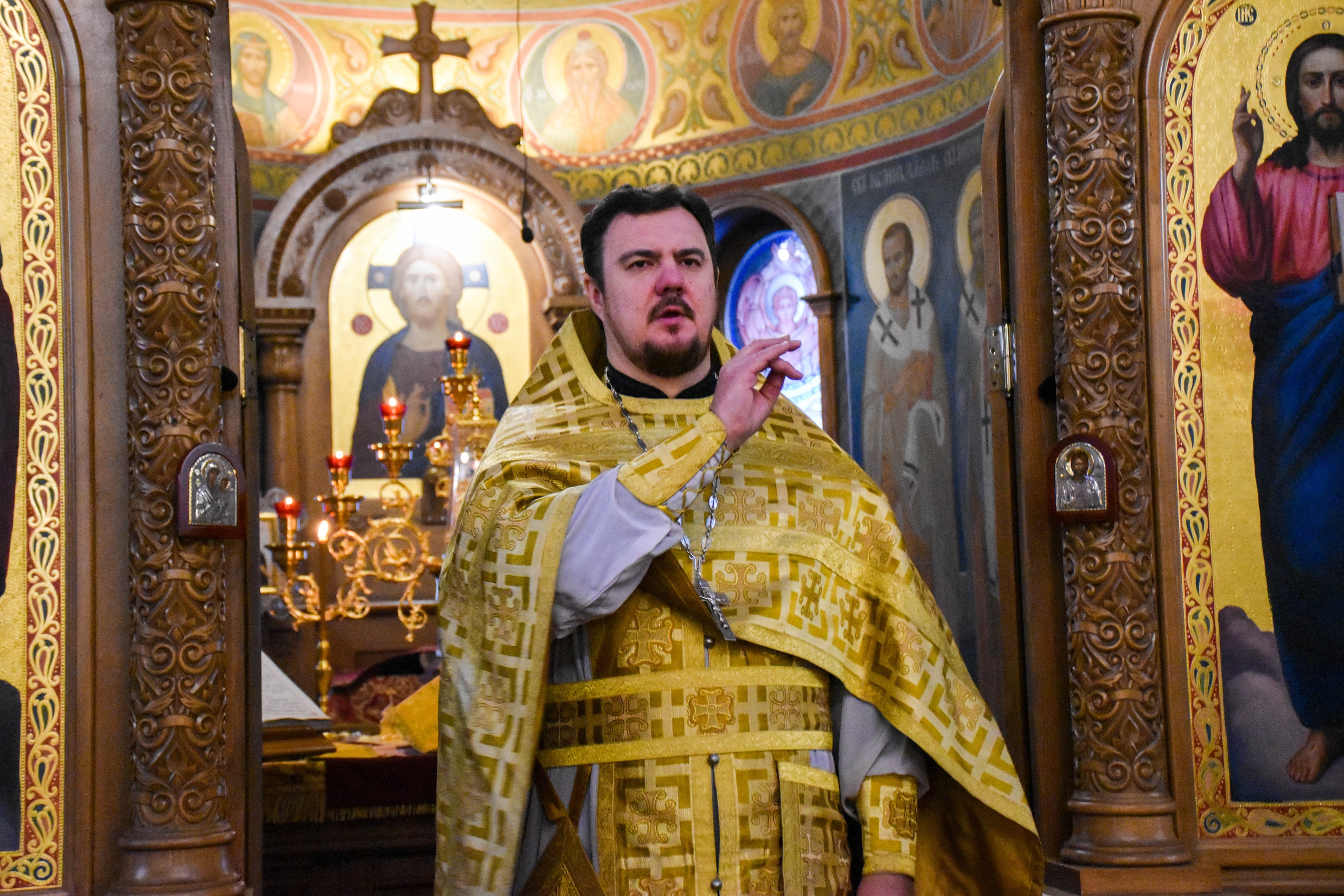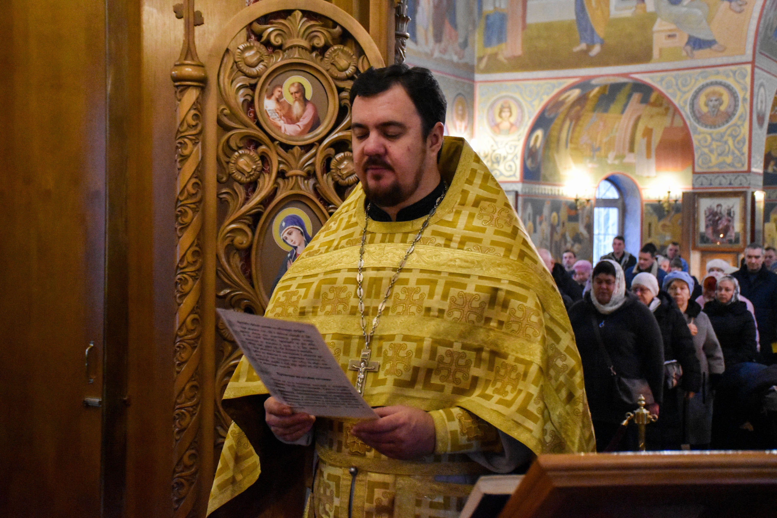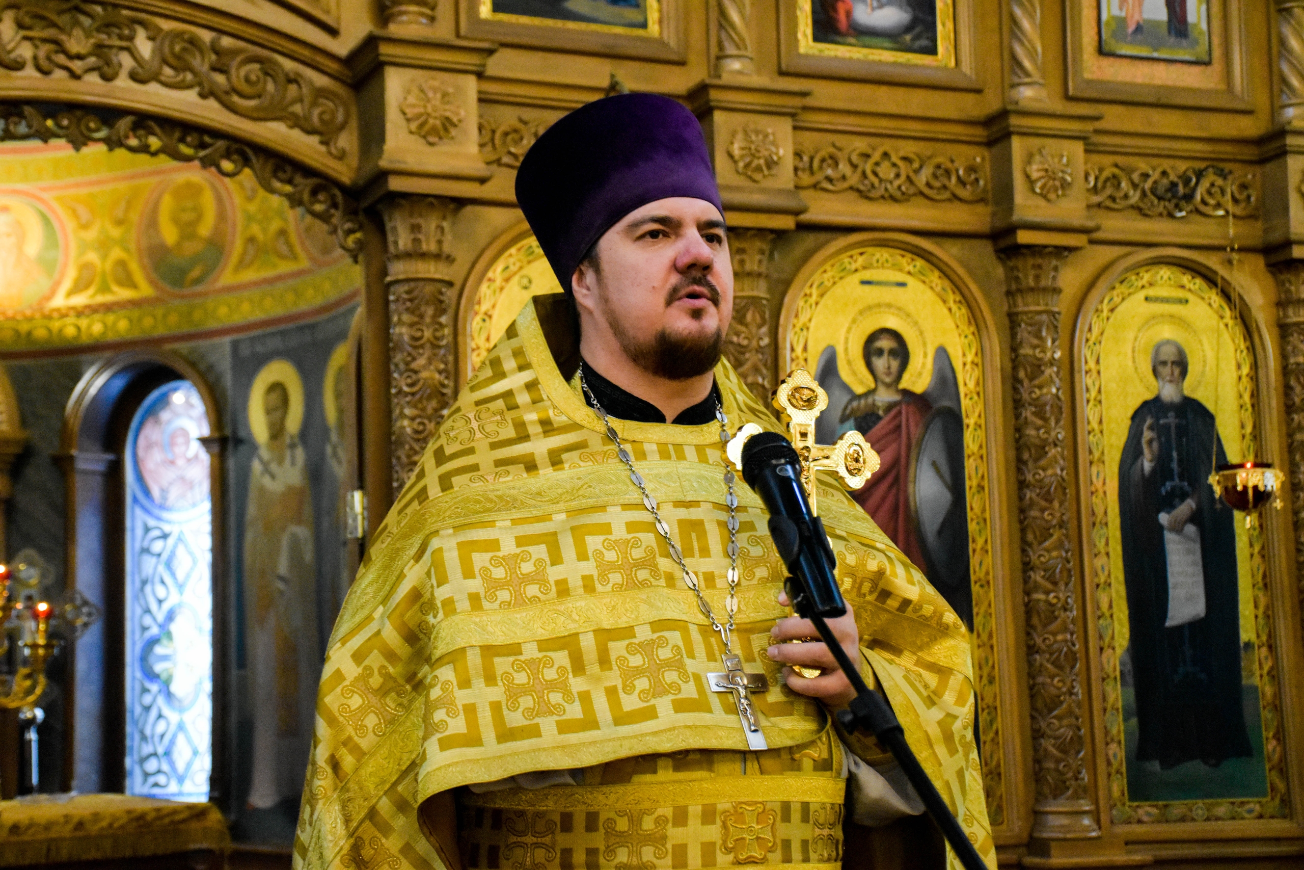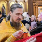 По отпусте литургии, отец Роман обратился к прихожанам со словами проповеди. Настоятель рассказал о воскресном евангльском зачале, которое читалось за литургией.