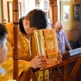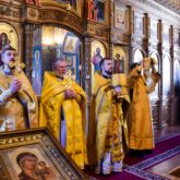 Богослужение возглавил настоятель храма священник Алексей Завогородний. Отцу Алексею сослужили священник Виктор Басов, священник Андрей Толстолуцкий и диакон Сергий Корнеев.