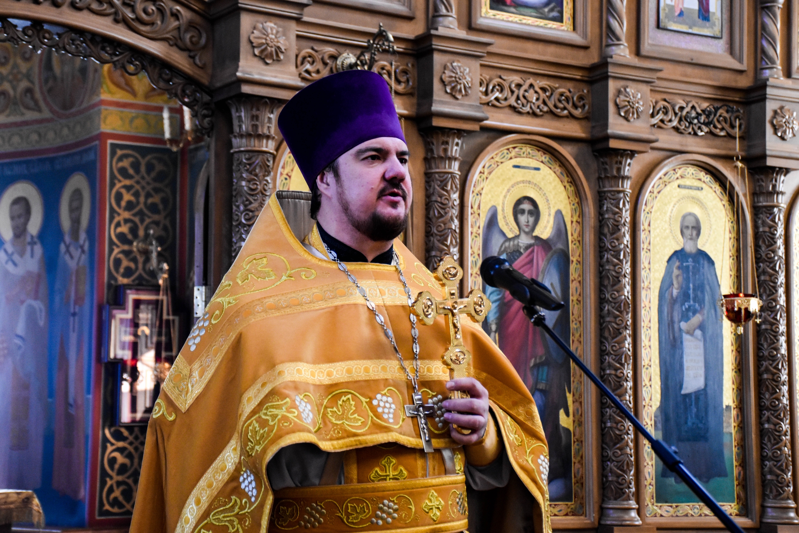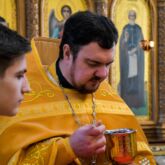 По запричастном стихе со словами проповеди к прихожанам обратился клирик храма иерей Иоанн Тихонов.