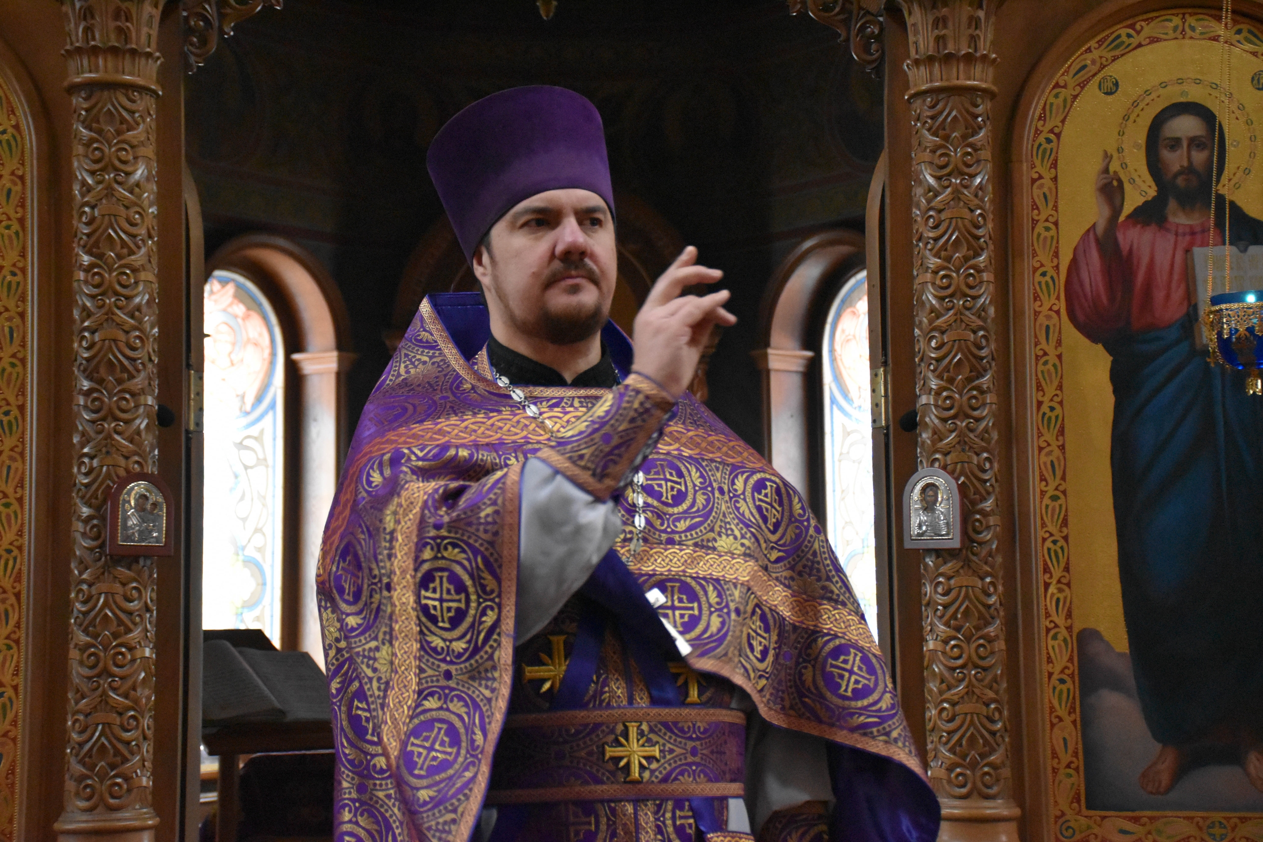 По запричастном стихе со словами проповеди к прихожанам обратился клирик храма иерей Иоанн Тихонов.