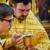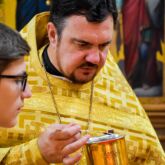 По отпусте литургии, отец Роман обратился к прихожанам со словами проповеди. Настоятель рассказал о воскресном евангльском зачале, которое читалось за литургией.