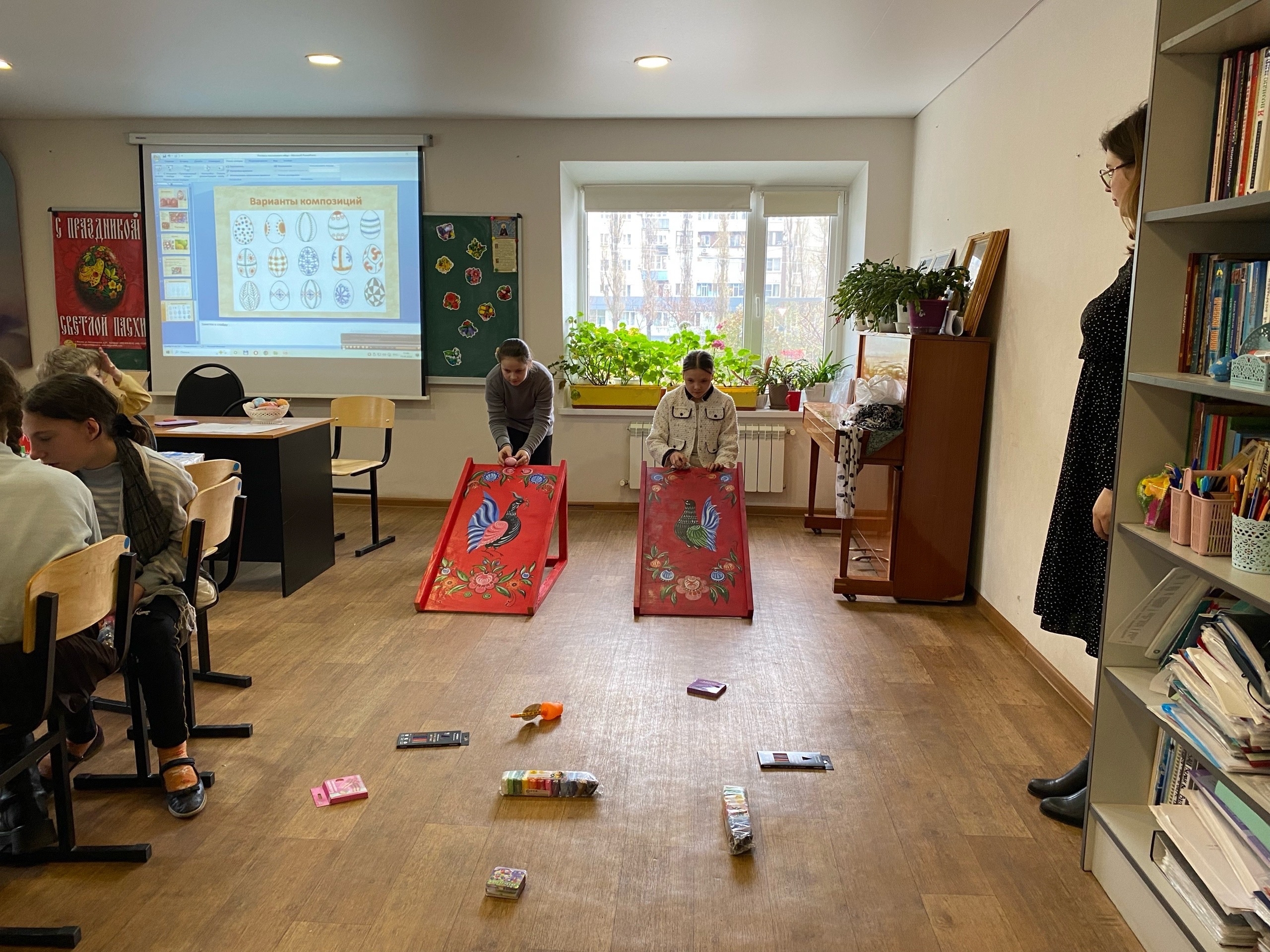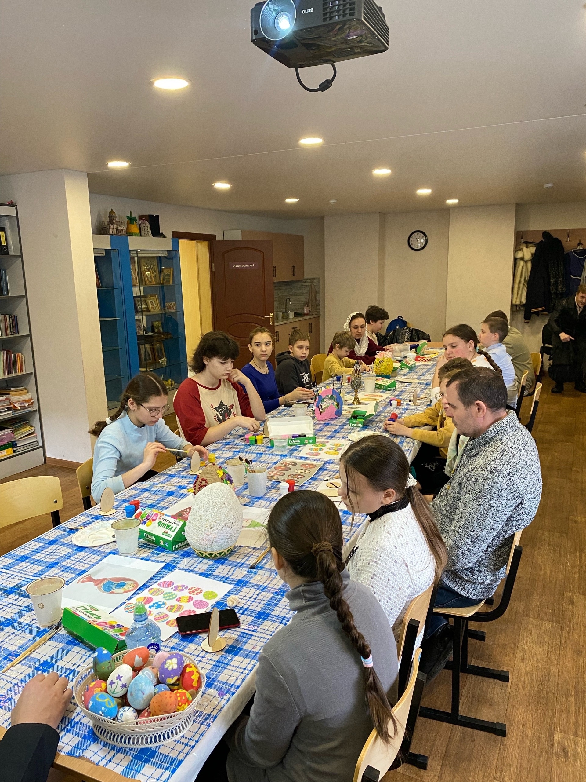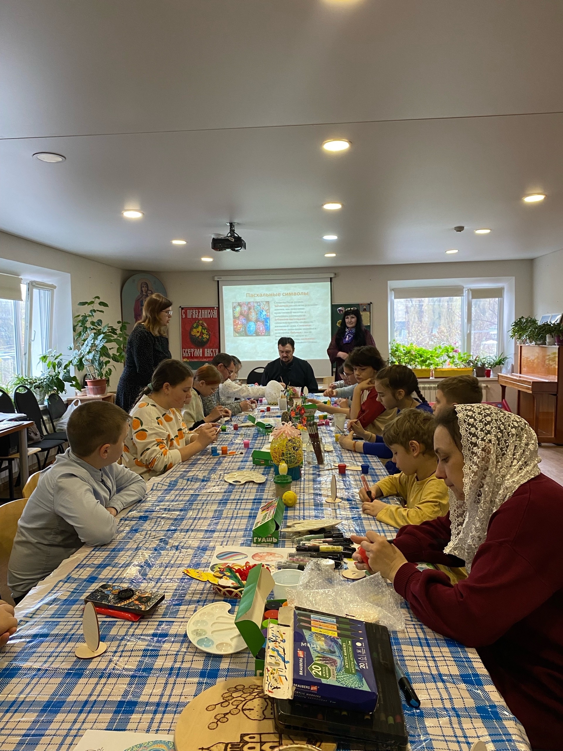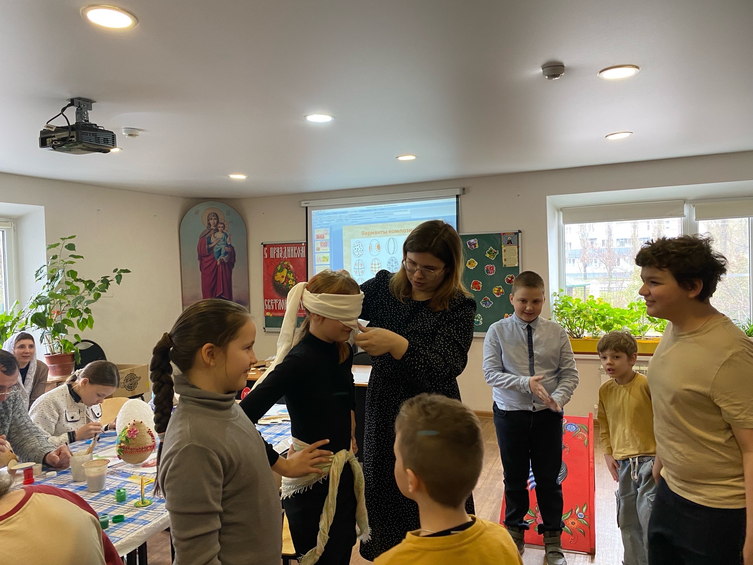 19 апреля в Неделю апостола Фомы (Антипасхи) педагоги Воскресной школы храма во имя преподобного Сергия Радонежского провели для своих воспитанников серию пасхальных мастер-классов, в которых принял участие настоятель протоиерей Роман Вылуск.