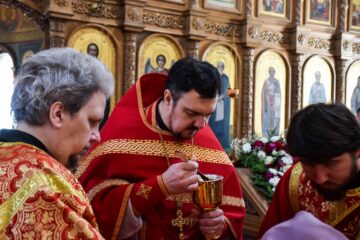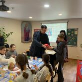 Затем отец Роман поздравил воспитанника воскресной школы нашего храма Арсения Медведева, который занял первое место в Муниципальном туре олимпиады по Основам Православной Культуры, а так же участвовал в областном и региональный туре в г. Москве, где достойно прошёл конкурсный тест.