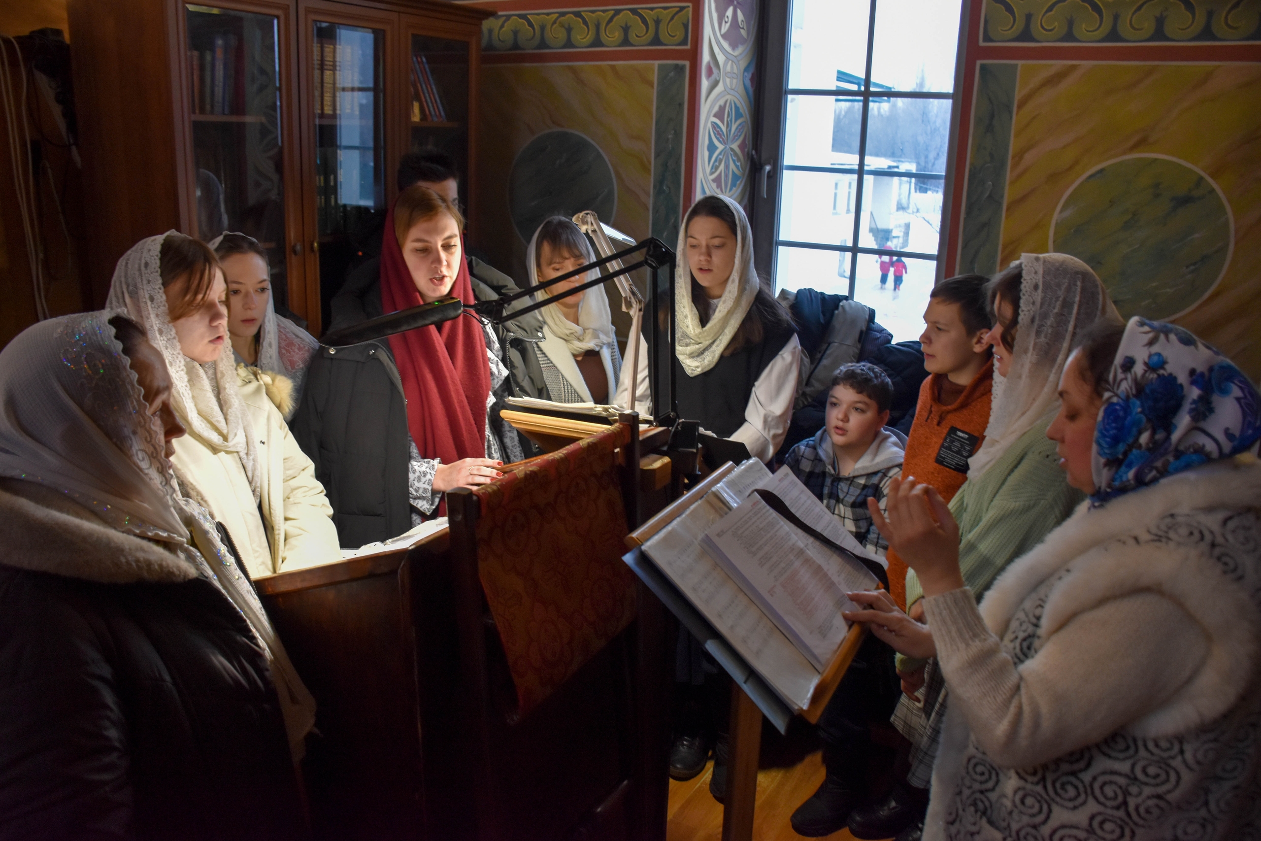 Богослужебные песнопения исполнили мужской хор под управлением регента Алексея Завалишина и молодежный хор под управлением регента Веры Басовой.