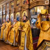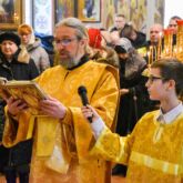 Богослужение возглавил настоятель храма священник Алексей Завгородний, которому сослужили священник Сергий Левищев, священник Виктор Басов, священник Андрей Толстолуцкий, диакон Виктор Кораблин и диакон Александр Карнаух.