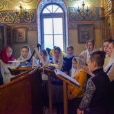 Богослужебные песнопения исполнили хор под управлением регента Алексея Завалишина и молодежный хор под управлением регента матушки Веры Басовой.