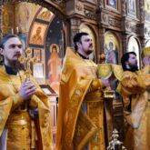 Богослужебные песнопения исполнили смешанный хор под управлением регента Алексея Завалишина.