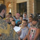 В последнее воскресенье августа по сложившейся традиции в храме в честь иконы Пресвятой Богородицы «Всех скорбящих Радость», после Божественной литургии, совершался водосвятный молебен для учащих и учащихся. За богослужением собравшиеся молились о благословении и помощи Божией в предстоящем учебном году. После молебна всем детям были розданы молитвы для учащихся.