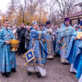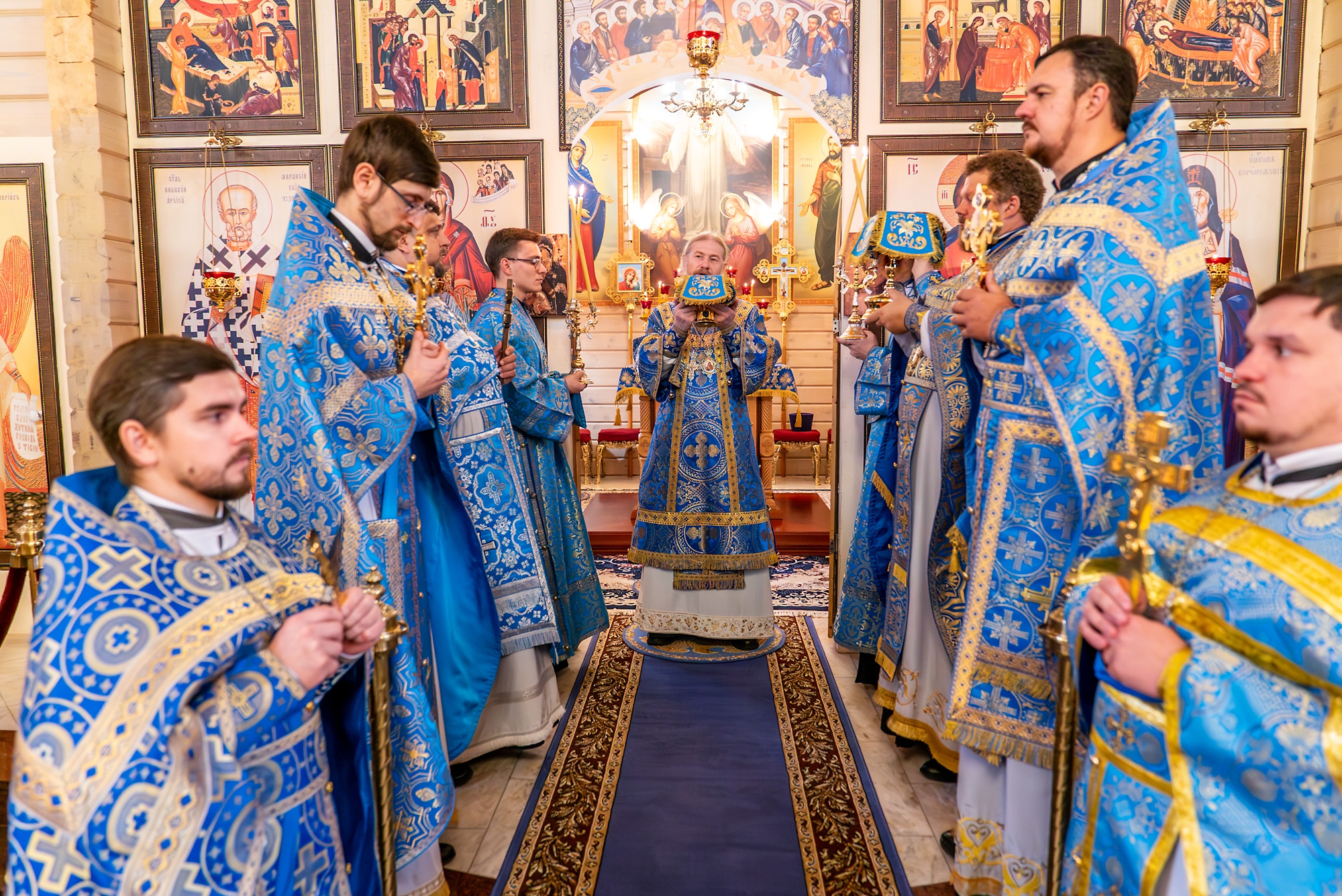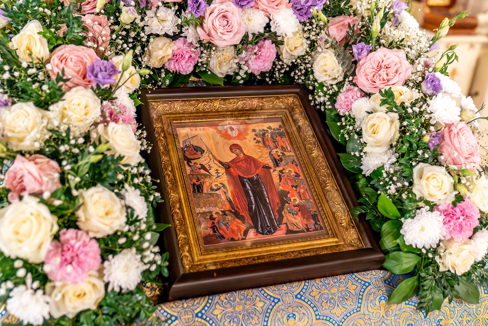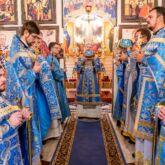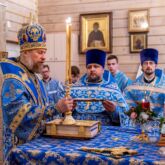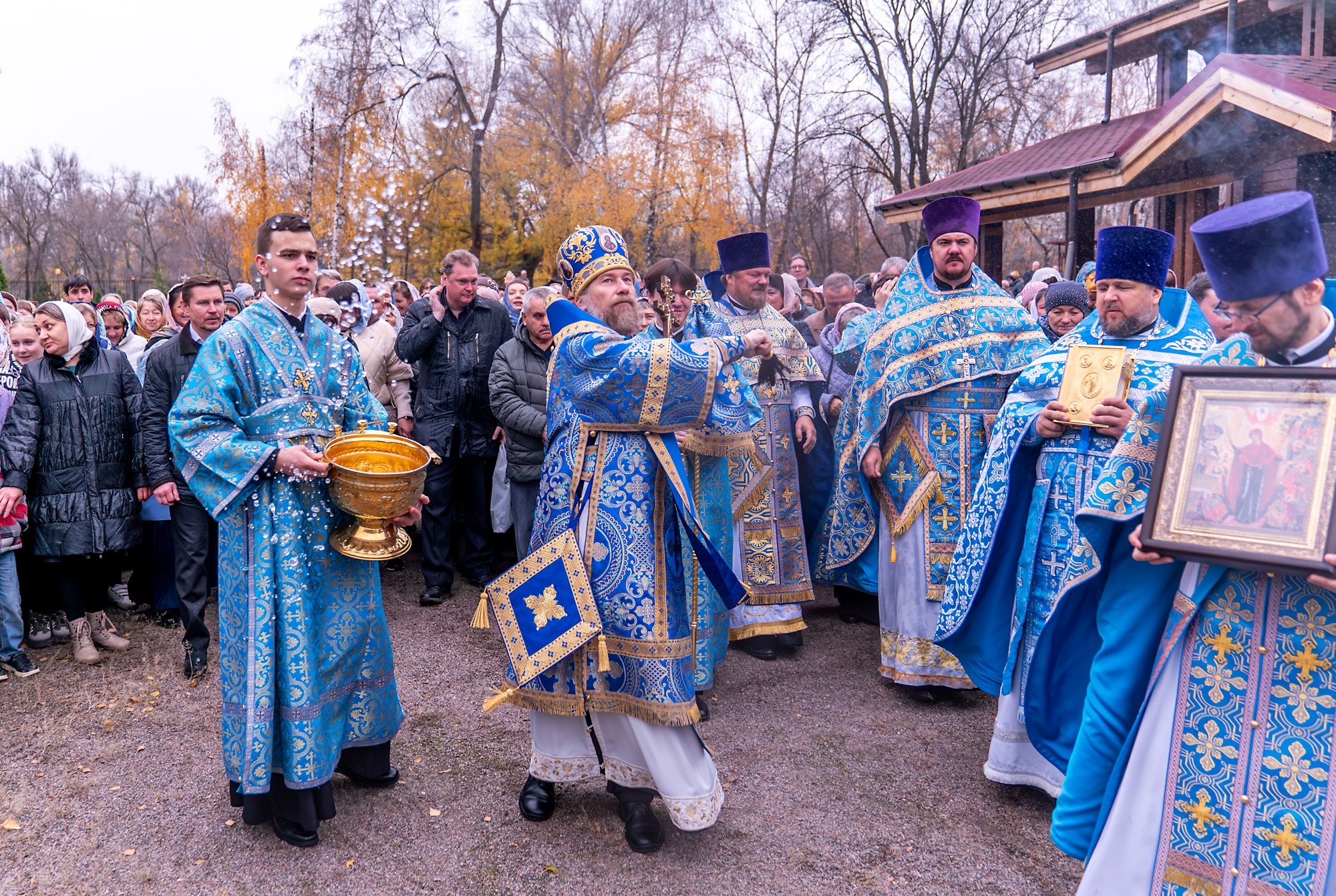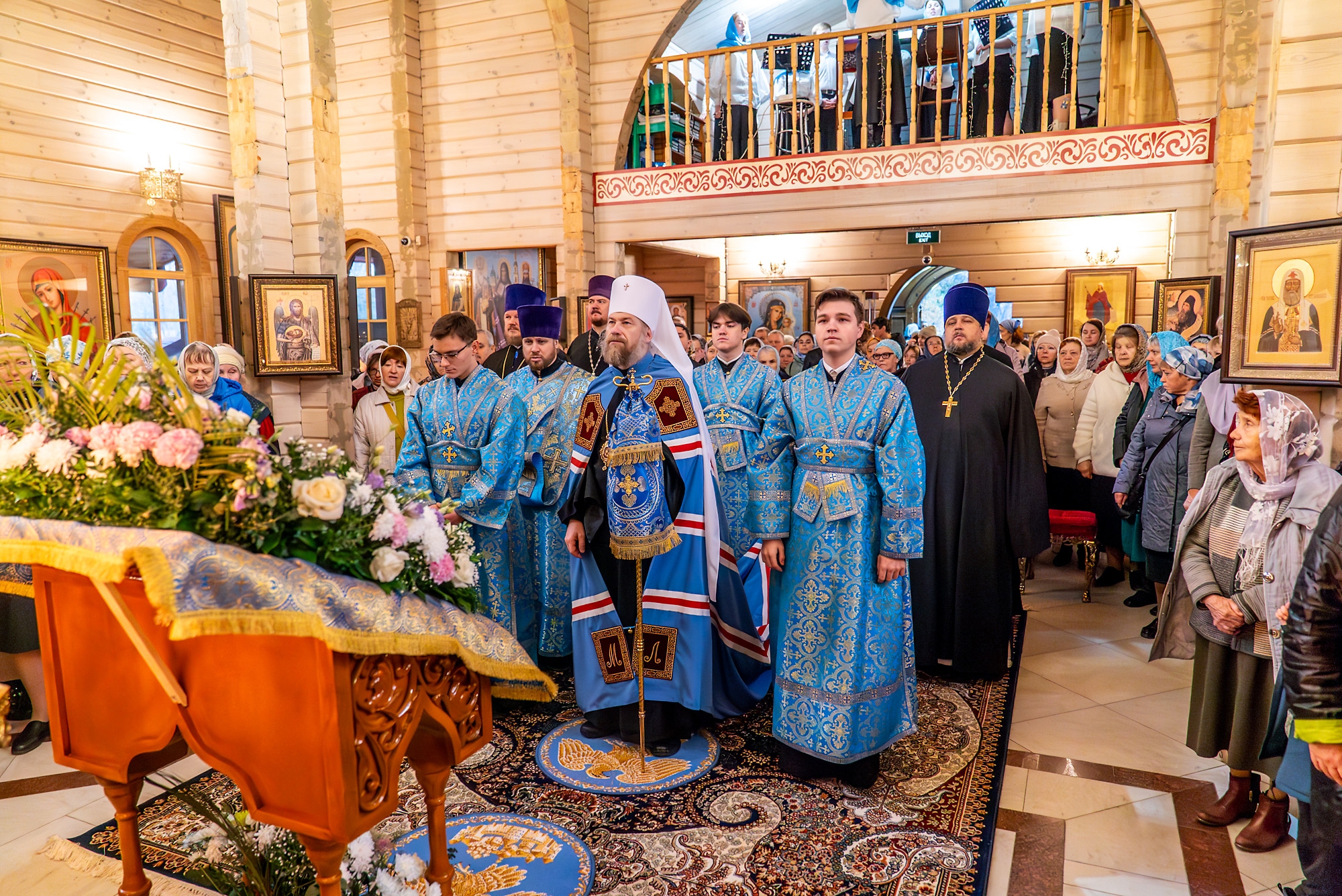 После отпуста Литургии владыка Леонтий возглавил служение праздничного молебна и крестный ход вокруг храма. «Пресвятая Богородице, спаси нас!» – единым сердцем и устами воспевали священнослужители и все богомольцы, умоляя Заступницу Усердную рода христианского сохранить град, страну нашу и весь народ от бед и злых обстояний, даровать радость и утешение всем скорбящим и страждущим. На четырех сторонах храма совершалось окропление верующих святой водой. У алтаря митрополит Леонтий возгласил евангельское зачало. У западных церковных врат Владыка осенил всех молящихся образом Божией Матери.