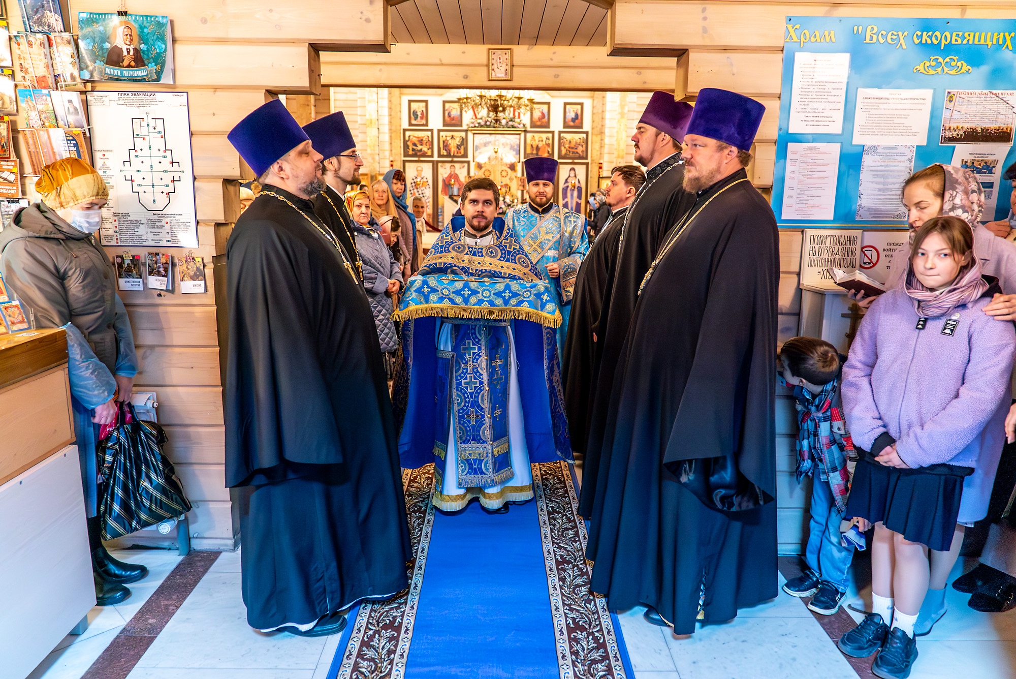 При стечении множества верующих воронежцев архиерейским служением была совершена Божественная литургия. Высокопреосвященнейшему Владыке сослужили секретарь Воронежского епархиального управления протоиерей Андрей Скакалин, ректор Воронежской духовной семинарии иерей Роман Ткачев, благочинный Левобережного церковного округа протоиерей Роман Вылуск, настоятель храма в честь иконы Божией Матери «Всех скорбящих Радость» г. Воронежа иерей Константин Рева и клирики того же храма иерей Андрей Тулинов и иерей Димитрий Малий.