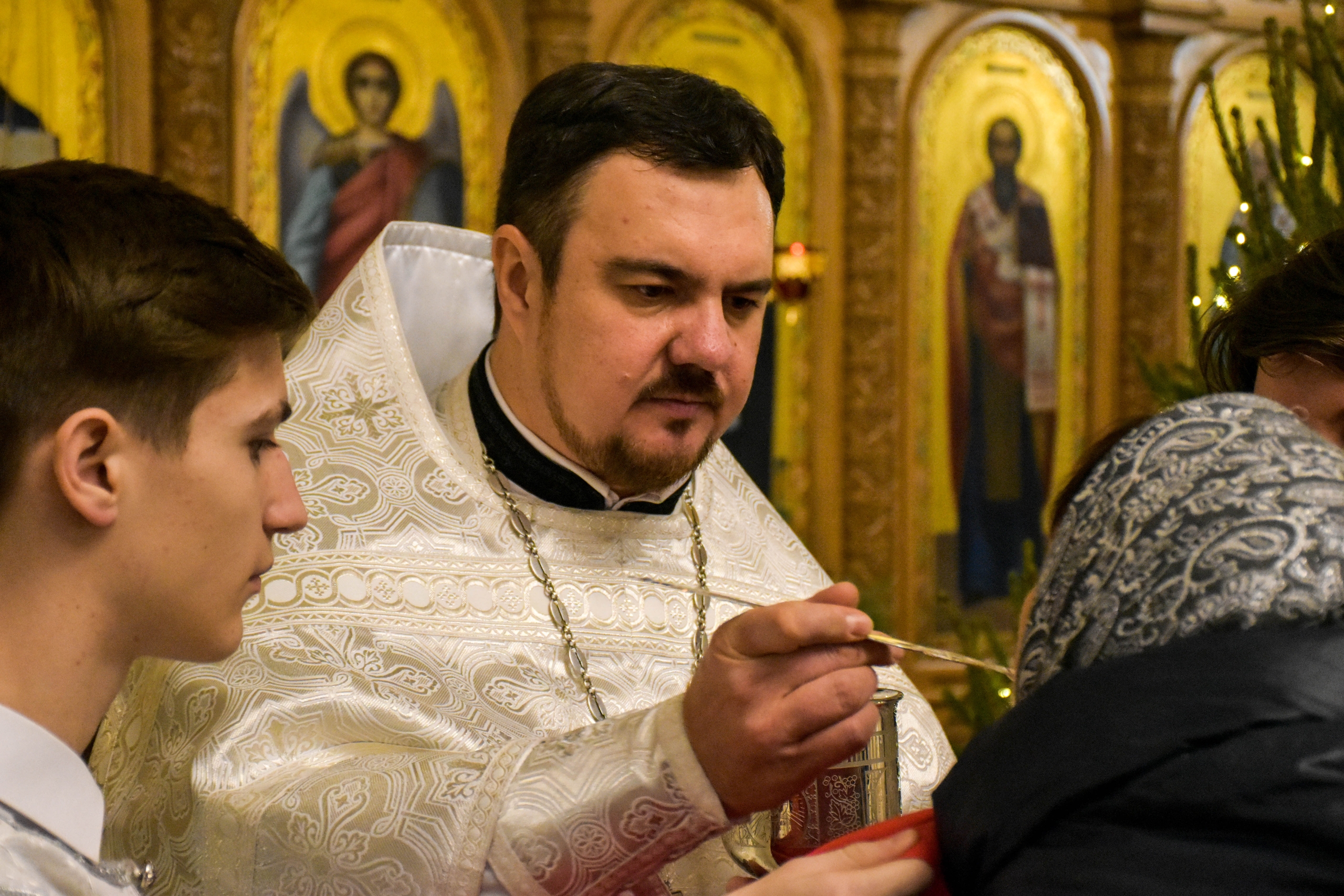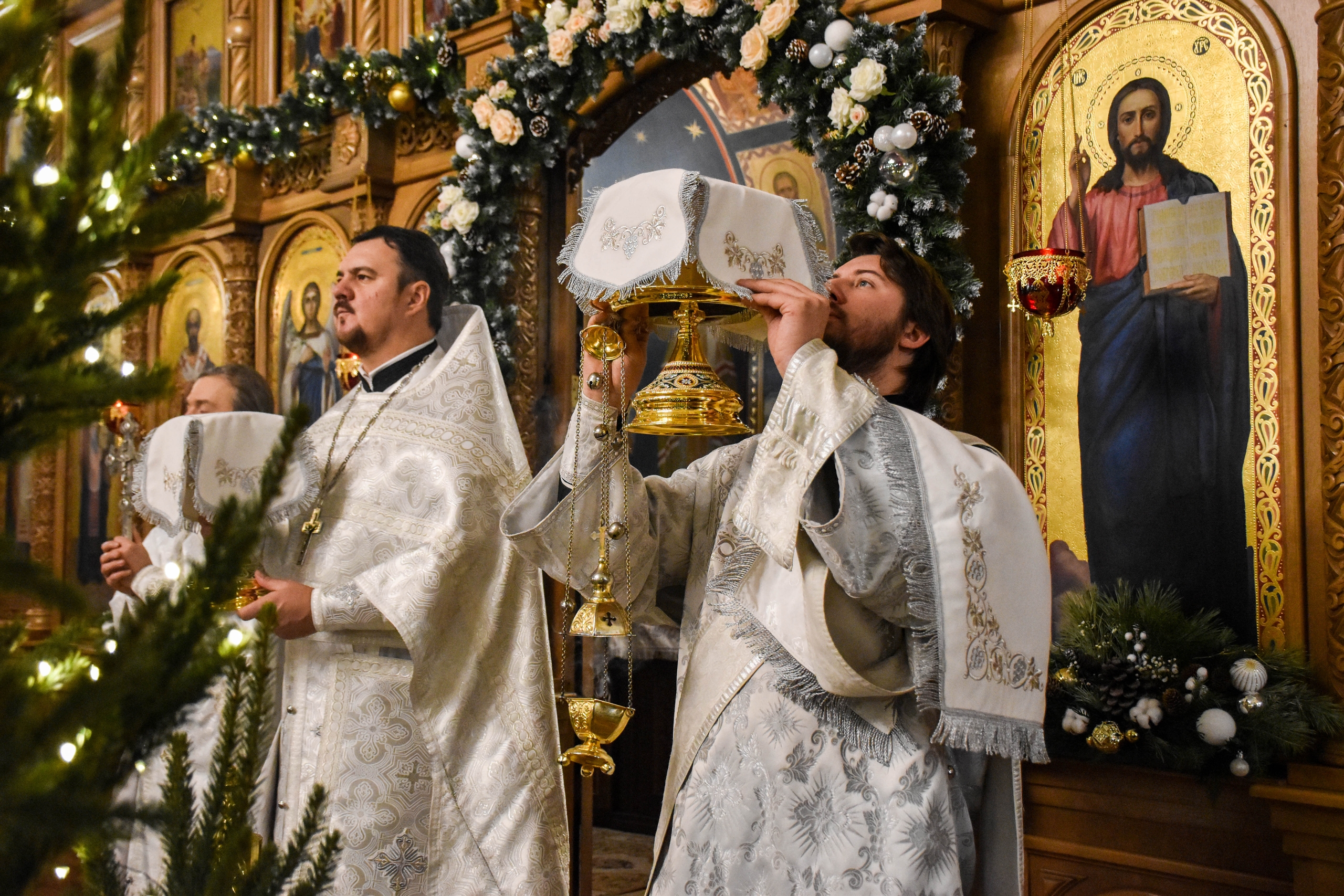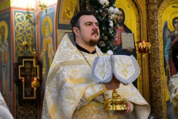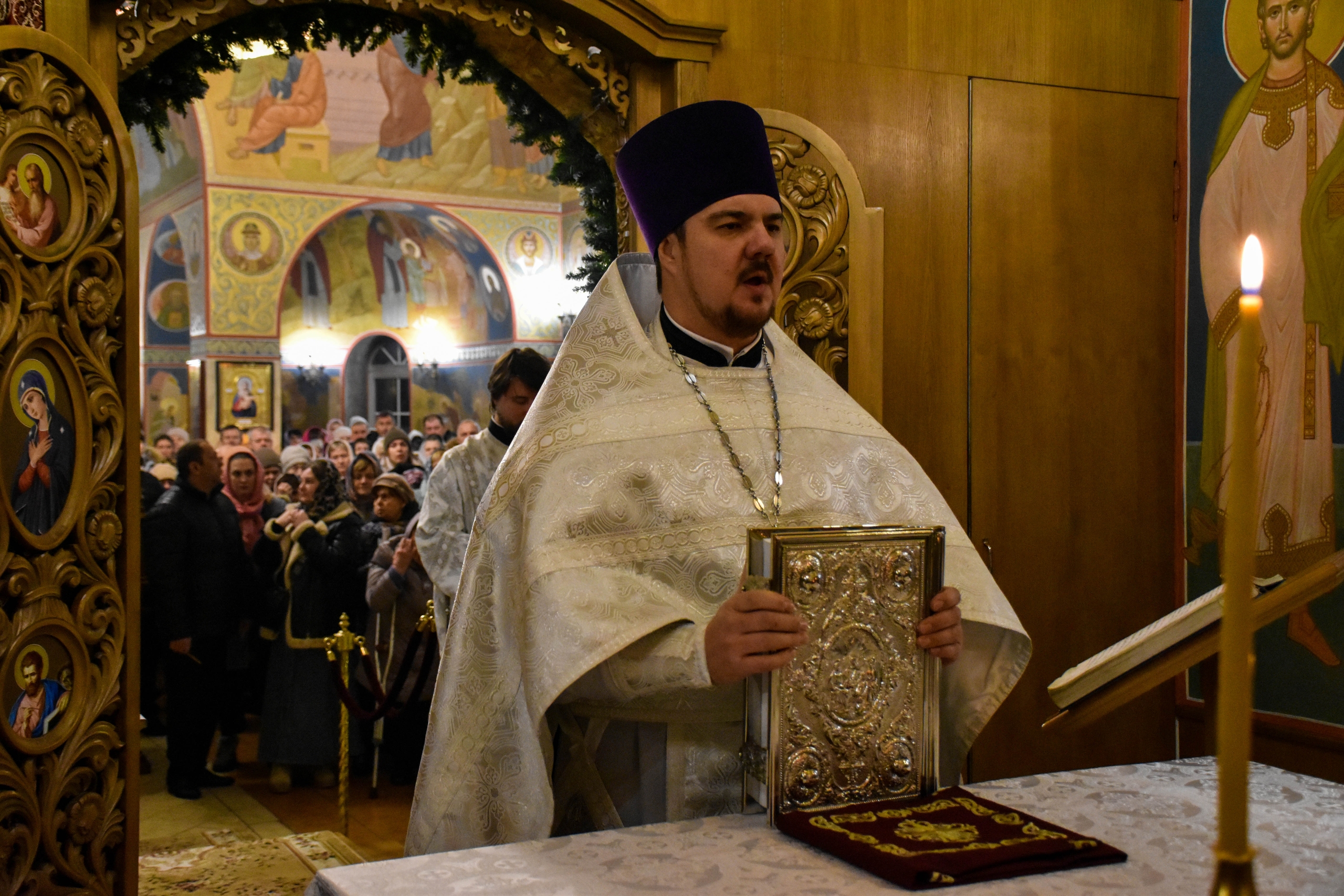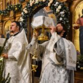 По окончании праздничной литургии настоятель прихода протоиерей Роман Вылуск зачитал для молящихся рождественское послание Святейшего Патриарха Московского и всея Руси Кирилла.