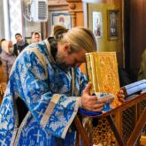 В храме во имя преподобного Сергия Радонежского богослужение возглавил настоятель храма священник Алексей Завогородний. Отцу Алексею сослужили священник Сергий Левищев, священник Виктор Басов, священник Андрей Толстолуцкий диакон Александр Карнаух и диакон Виктор Кораблин.