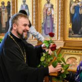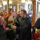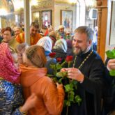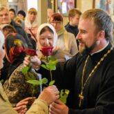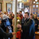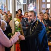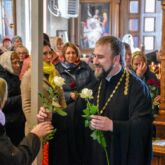 В праздник святых жён-мироносицы по окончании Божественной Литургии настоятель храма во имя преподобного Сергия Радонежского поздравил всех женщин с православным женским днем