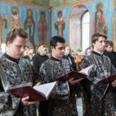 Правящему Архиерею сослужили секретарь Воронежского Епархиального управления протоиерей Андрей Скакалин, ректор ВДС священник Роман Ткачев, благочинный Левобережного церковного округа священник Алексий Завгородний и преподаватели семинарии в священном сане.