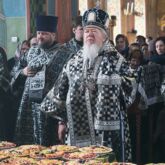 По заамвонной молитве было совершено чинопоследование, ежегодно совершаемое в пяток первой великопостной седмицы. После пения тропаря и кондака св. великомученику Феодору Тирону был прочитан молебный канон великомученику. Затем Архипастырь возгласил молитву на благословение колива — вареных зерен с различными фруктами — и окропил его святой водой. Затем освященное коливо было роздано всем молящимся.