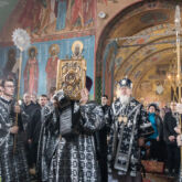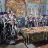 По заамвонной молитве было совершено последование, ежегодно совершаемое в пятницу первой великопостной седмицы. После чтения псалма, при пении тропаря вмч. Феодору Тирону митрополит Сергий совершил каждение приготовленных зерен и плодов (колива). Затем Архипастырь прочитал молебный канон вмч. Феодору и особую молитву на благословение колива. После окропления святой водой коливо было роздано всем присутствующим в храме.