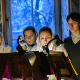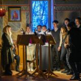 Богослужебные песнопения исполнили молодёжный хор под управлением регента матушки Веры Басовой и мужской хор под управлением регента Алексея Завалишина.