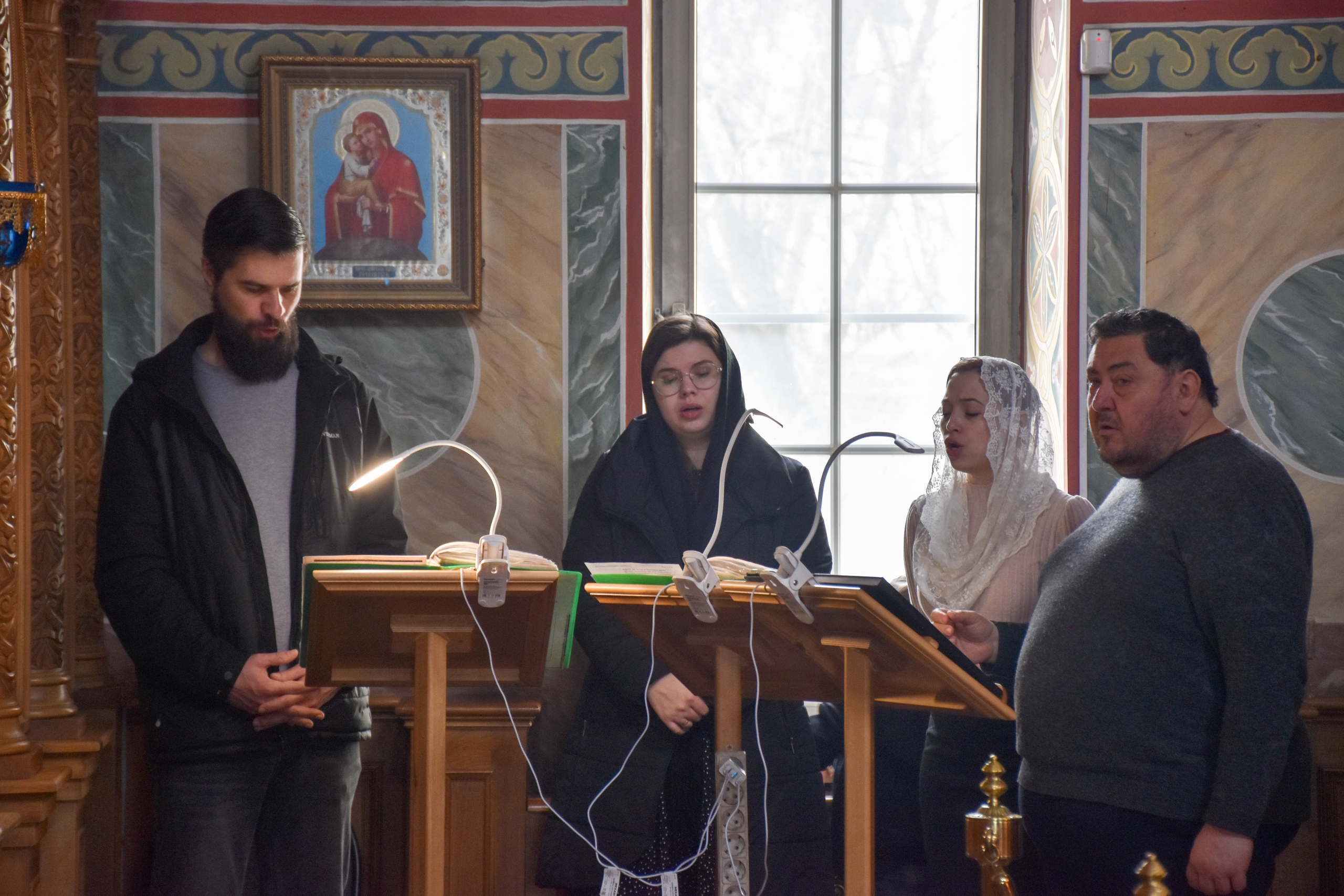 В субботу 5-й седмицы Великого поста, день Похвалы Пресвятой Богородицы, в храме во имя преподобного Сергия Радонежского была совершена Божественная литургия